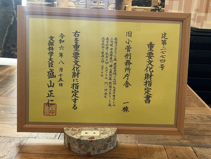 弊社が携わらせて頂いた「東京拘置所旧庁舎(旧小菅刑務所庁舎・重要文化財)」の見学会を行いました 「旧所長室」及び「旧会議室」の壁紙の復元・施工を池袋松屋が行いました。 残された資料や壁紙の切れ端を基にデジタルプリント壁紙を製作し、 当時の割り付けを変えることが無いよう、細心の注意を払い施工しました。 この建物は令和6年8月15日に国の重要文化財に指定されました。